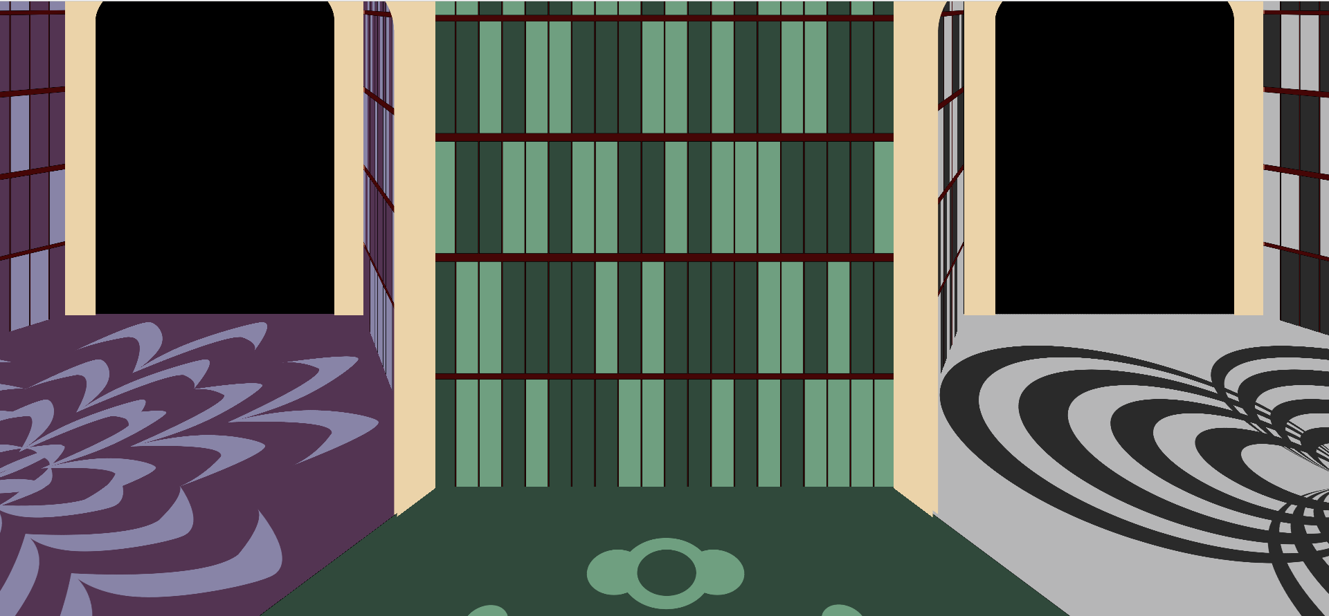 There is a Borges short story about an infinite library with hexagonal rooms. I tried to make something like that. Use the arrow keys to turn around and go to other rooms. See more about the developement of this project here.
