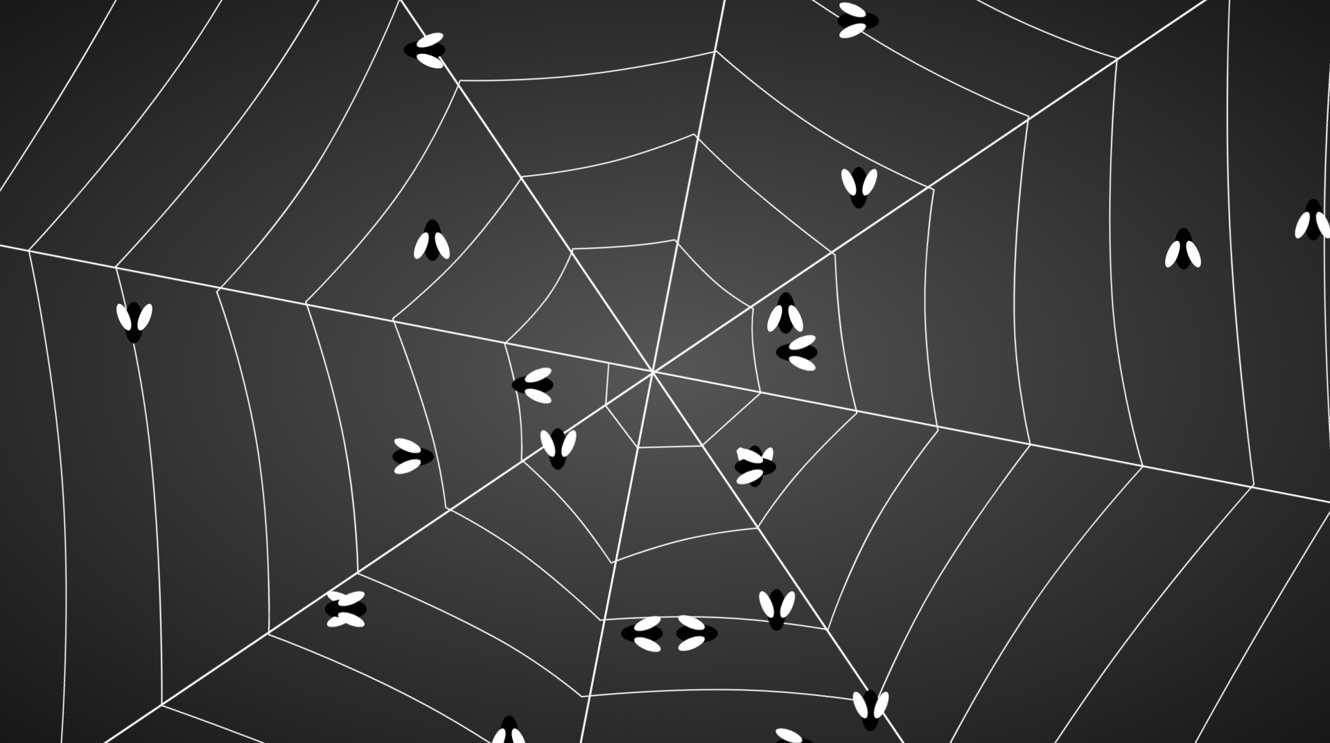 Collect the flies from the spiderweb, if you want to. There are no points, no winning, but the real spiders don't do it for those either... Here I just wanted to experiment with rotations and orbits of images.